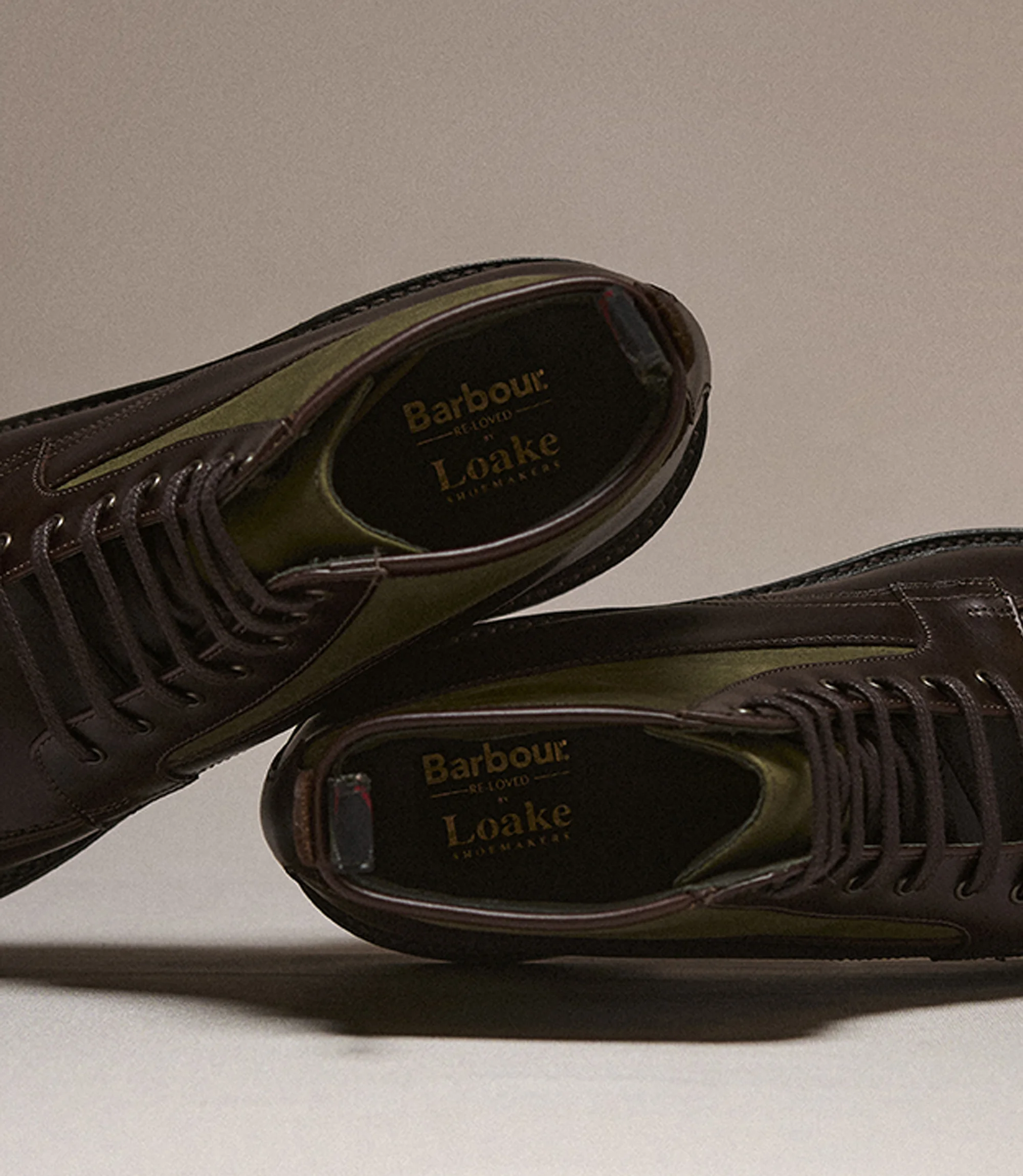 Every pair also includes an exclusive dual-branded keyring, made from surplus Loake leather and repurposed Barbour buttons — a thoughtful detail that continues the story of Re-Loved craftsmanship.