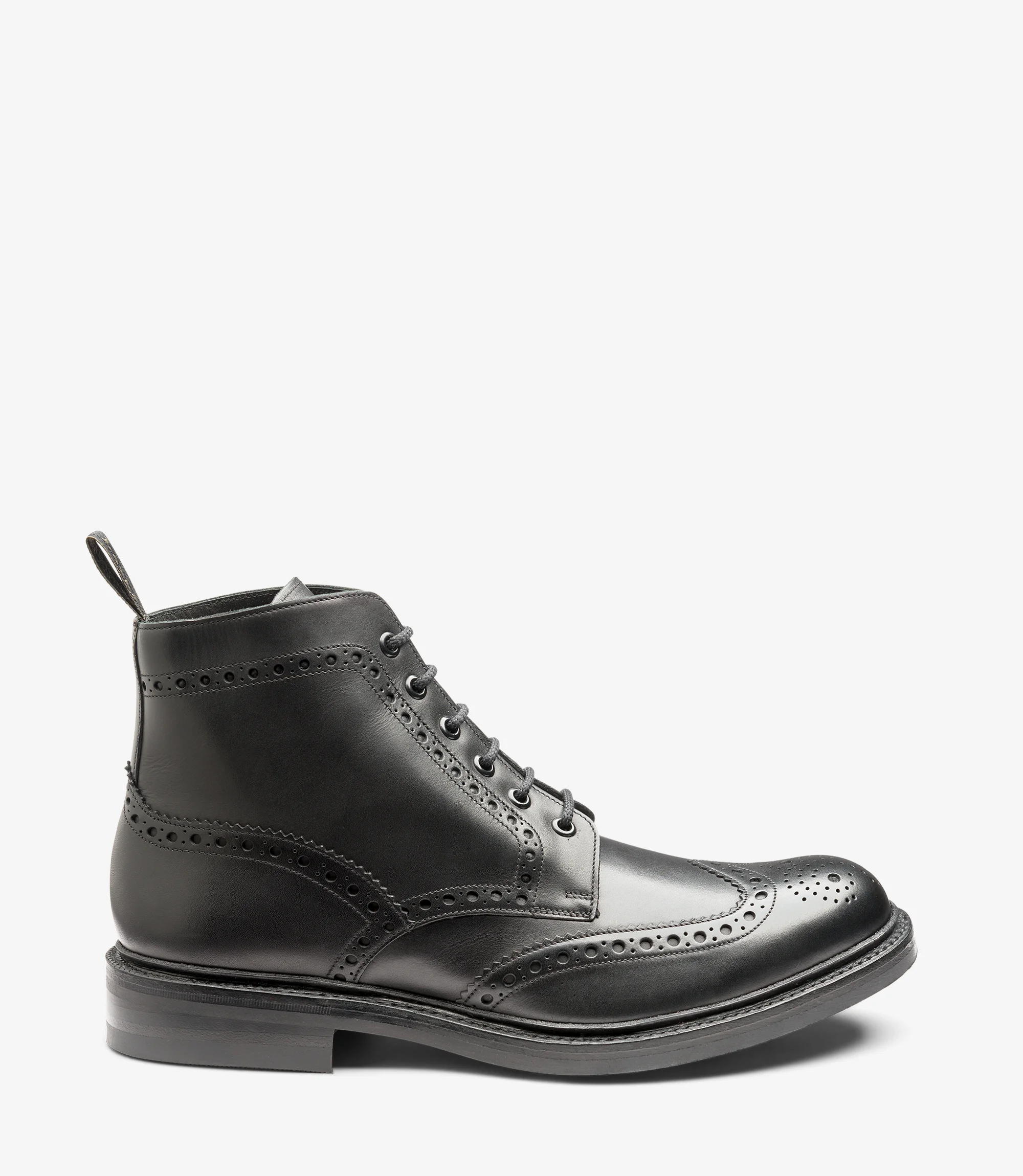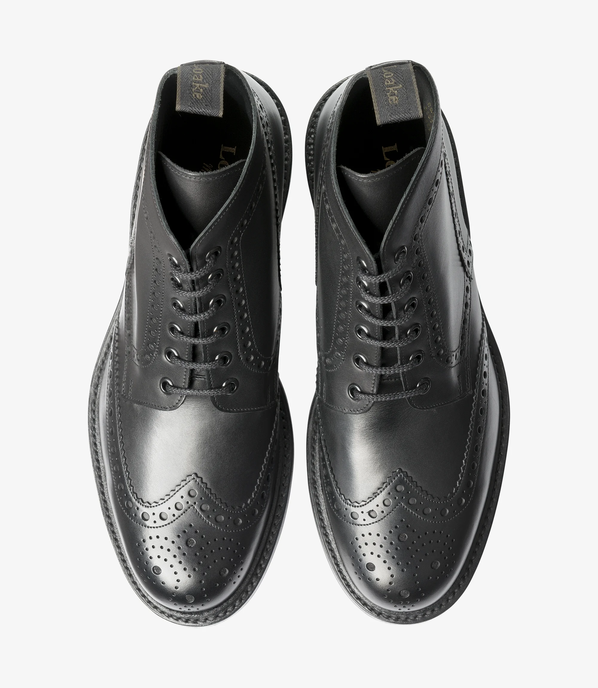 Premium brogue derby boot, featuring a Goodyear welted ‘Victory’ rubber sole for greater longevity and grip and a bellowed tongue to help prevent water penetrating the lace area. Bedale uses the ‘Pennine’ last shape for a Generous wide fit and bold toe shape and is available in 5 calf leather options. Bedale is made England.