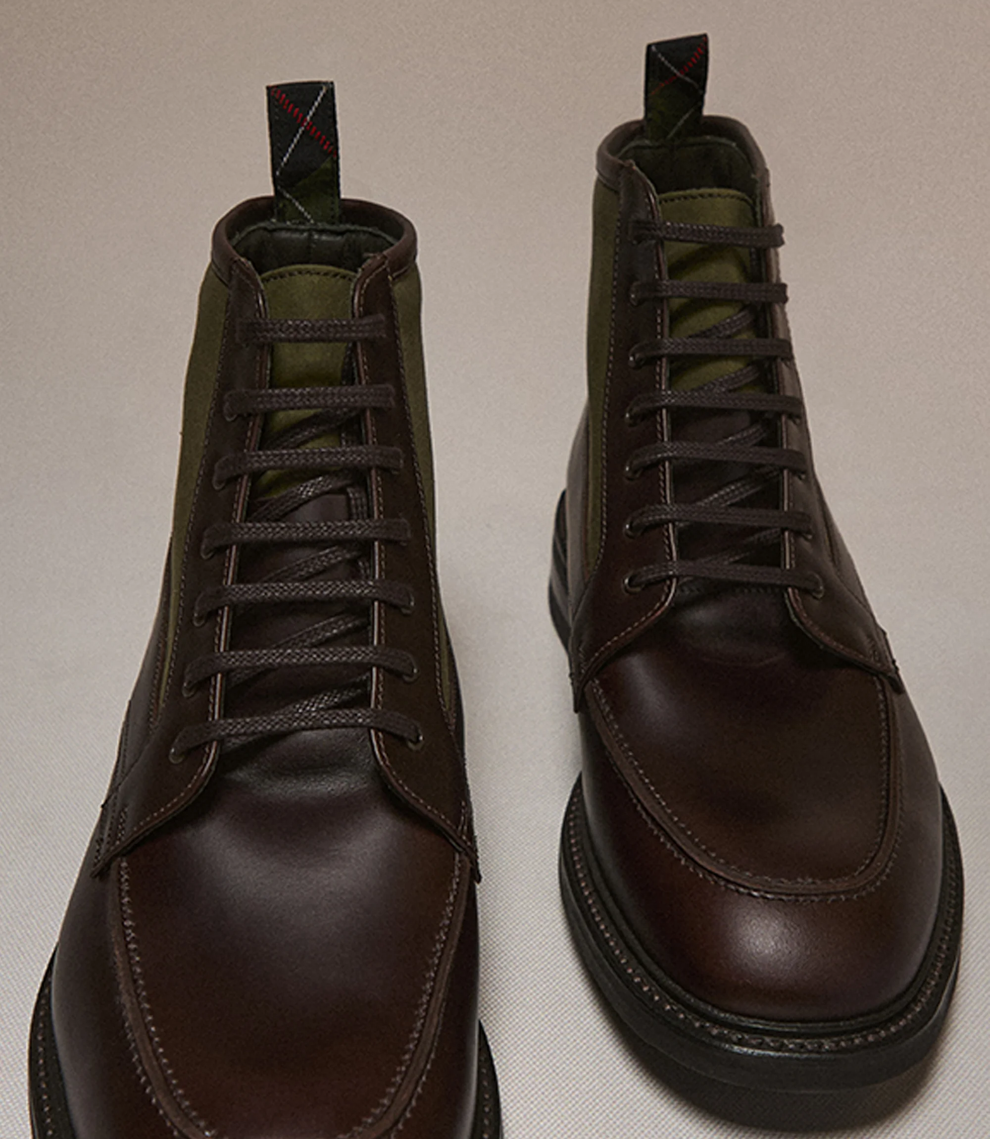 Made in England, the Gisbourne boot unites two icons of British craft. Upcycled Barbour wax jackets are combined with premium Loake leathers to create a distinctive finish on each pair.