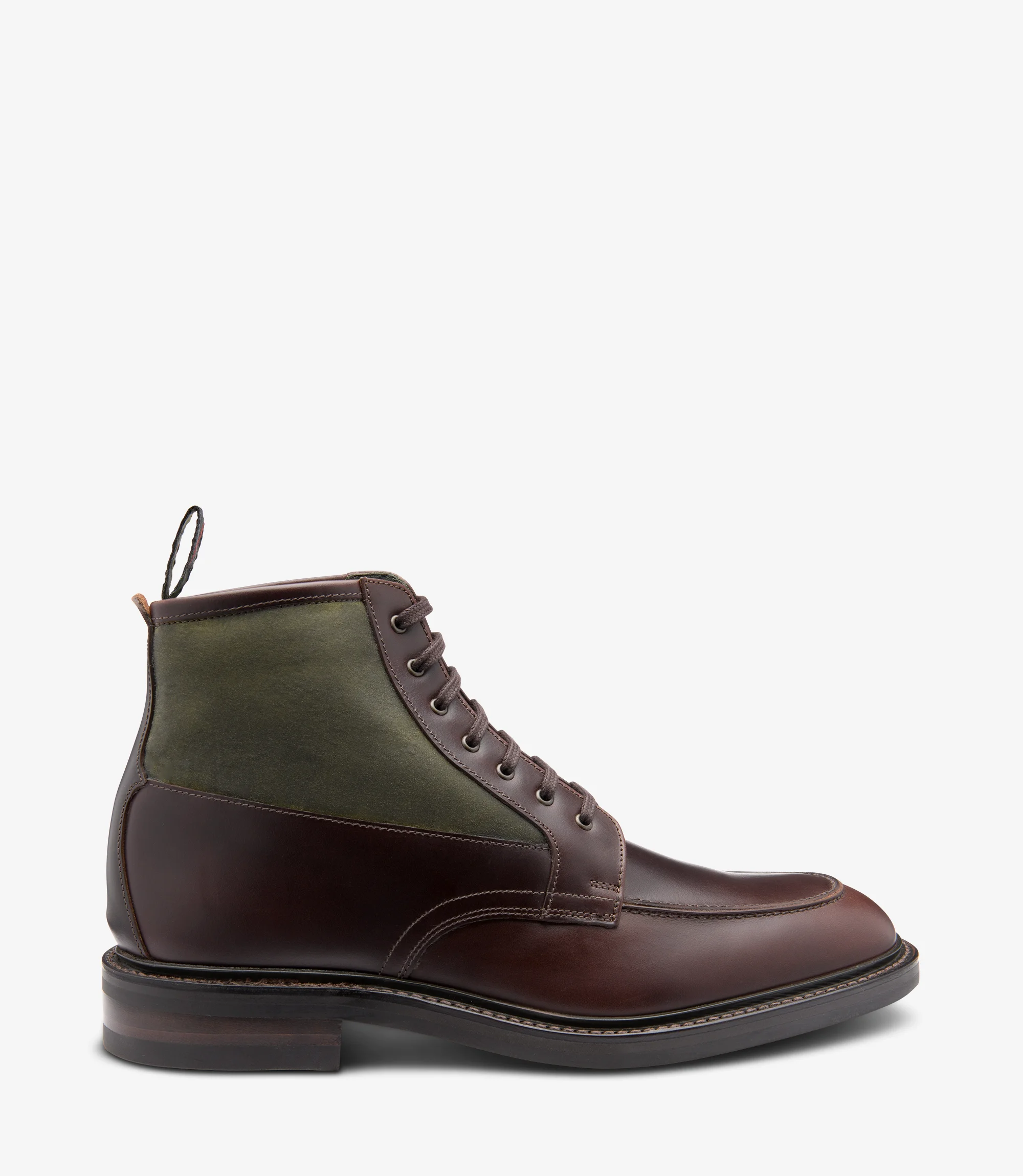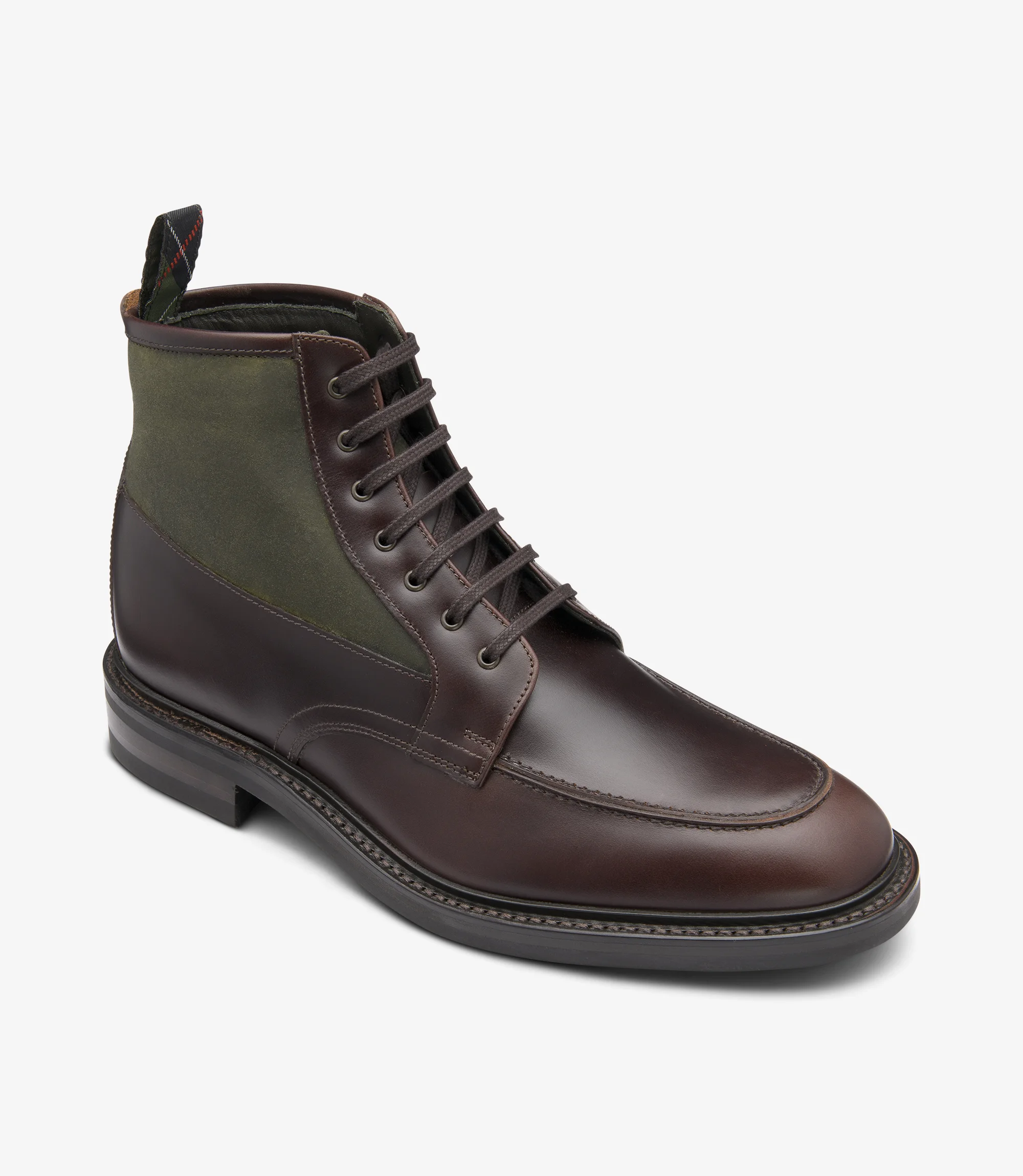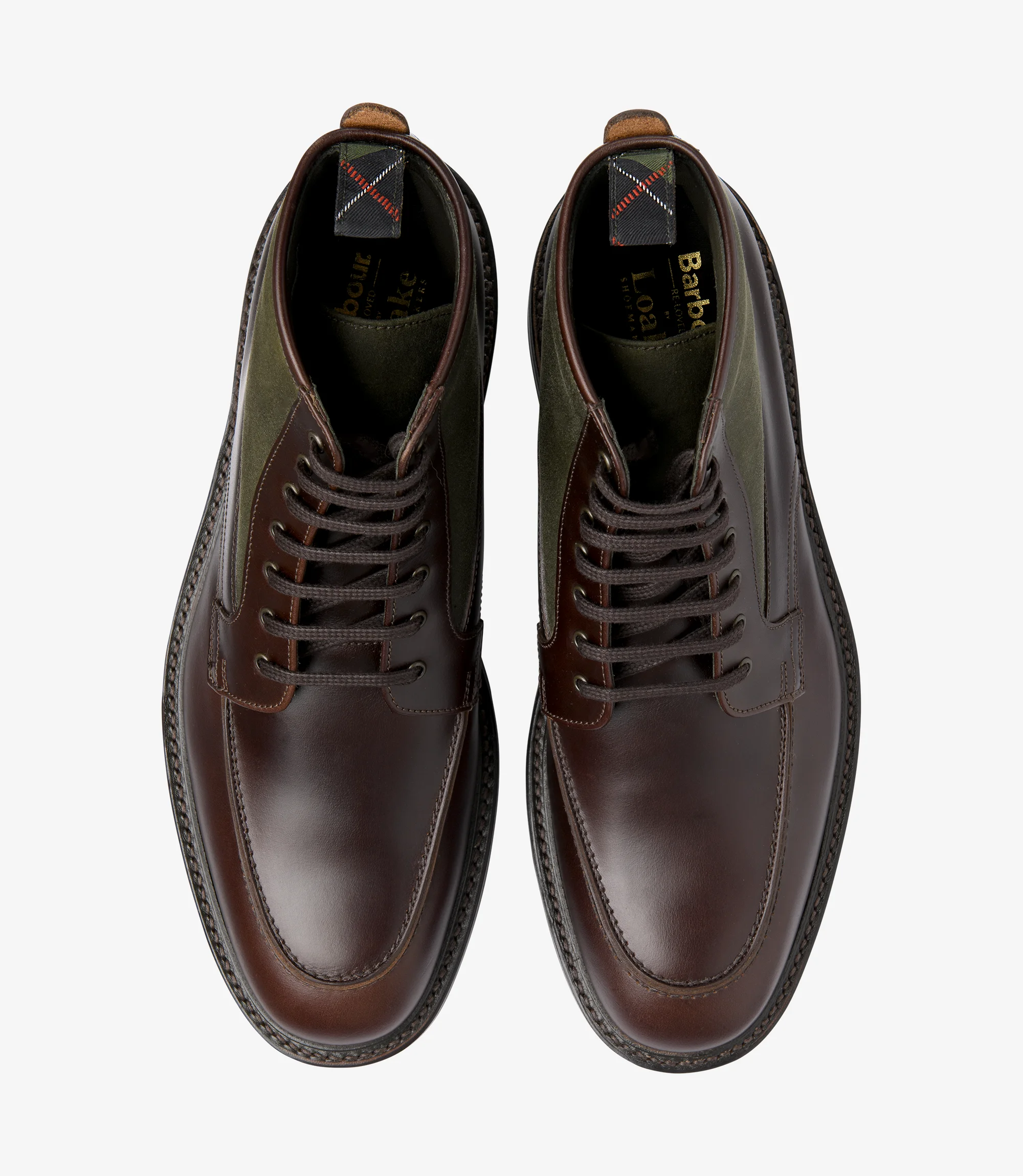 Made in England, the Gisbourne boot unites two icons of British craft. Upcycled Barbour wax jackets are combined with premium Loake leathers to create a distinctive finish on each pair.