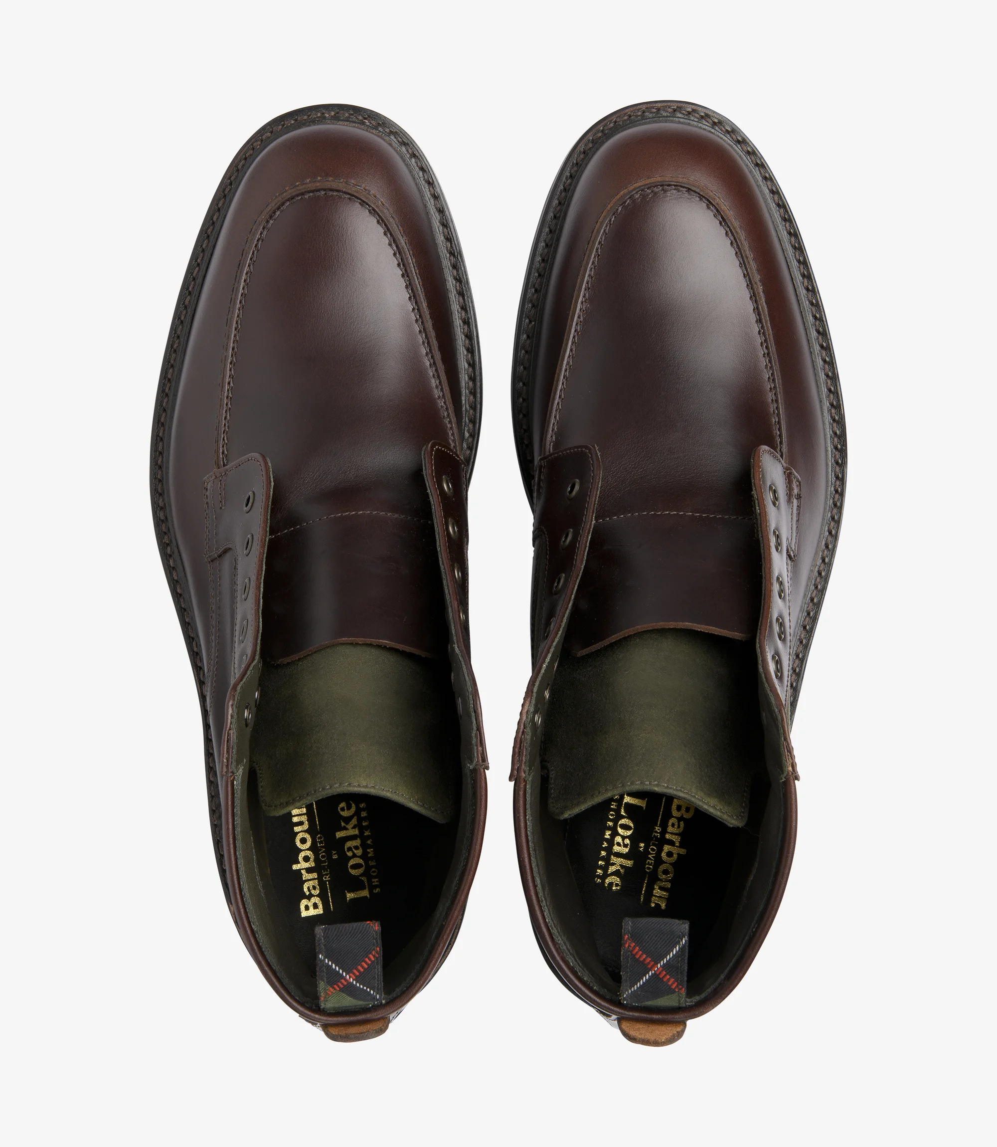 Built on Loake’s 024 last (F-fitting) with traditional Goodyear welted construction and a storm welt, the Gisbourne features a raised apron and butt seam for a refined, modern look. Its rubber Victory sole provides reliable grip without excess weight, while a cushioned in-sock with arch support, lined in Barbour tartan, ensures comfort.