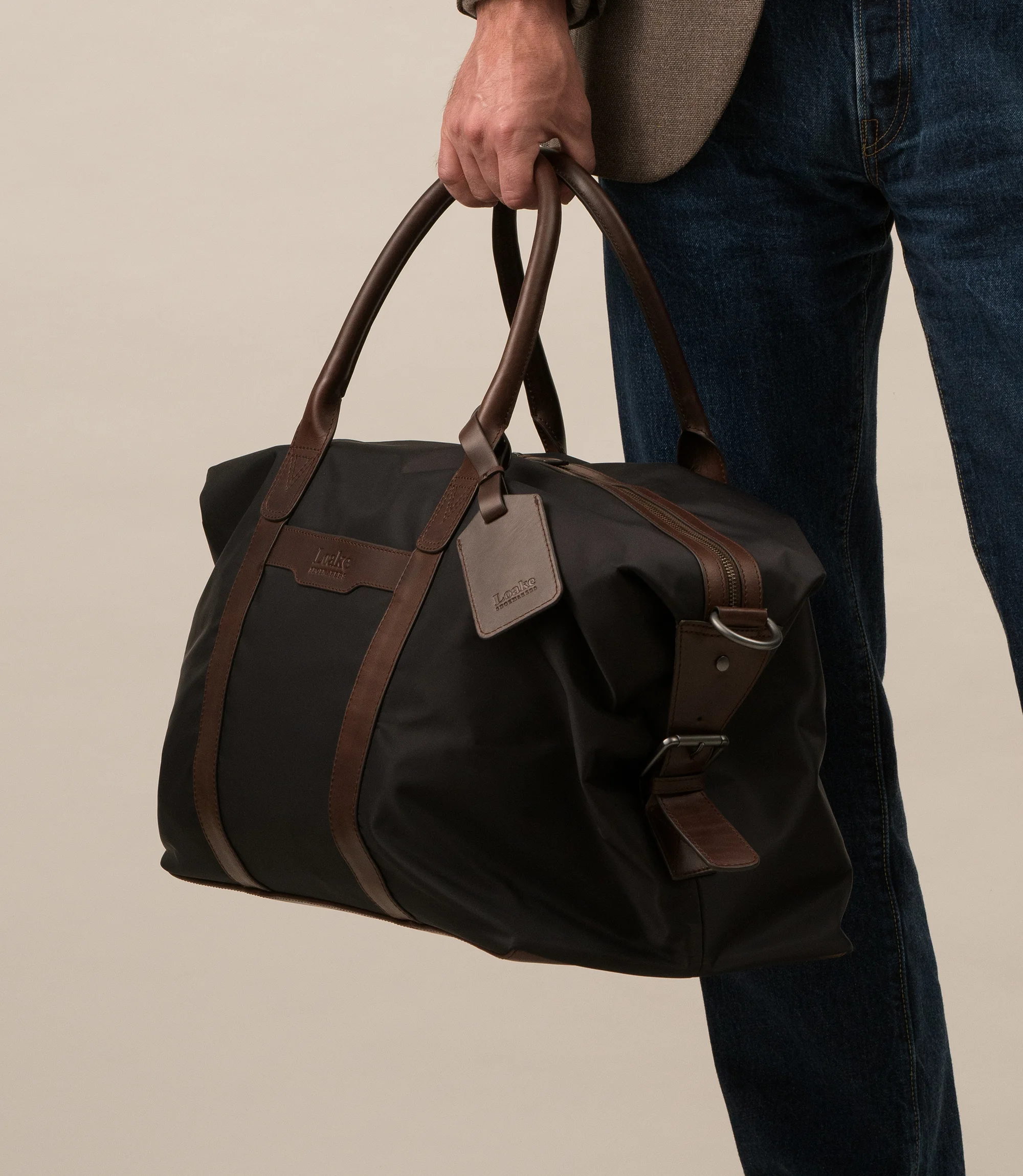 The Gower Holdall combines durable nylon with smooth leather detailing for a smart, versatile travel companion. It features a full-width internal pocket secured with Velcro, a single internal zip pocket, and an attached leather luggage tag for easy identification. Complete with a detachable shoulder strap for comfortable carrying, the Gower is designed to keep your essentials organised in style — ideal for weekends away or daily commutes.