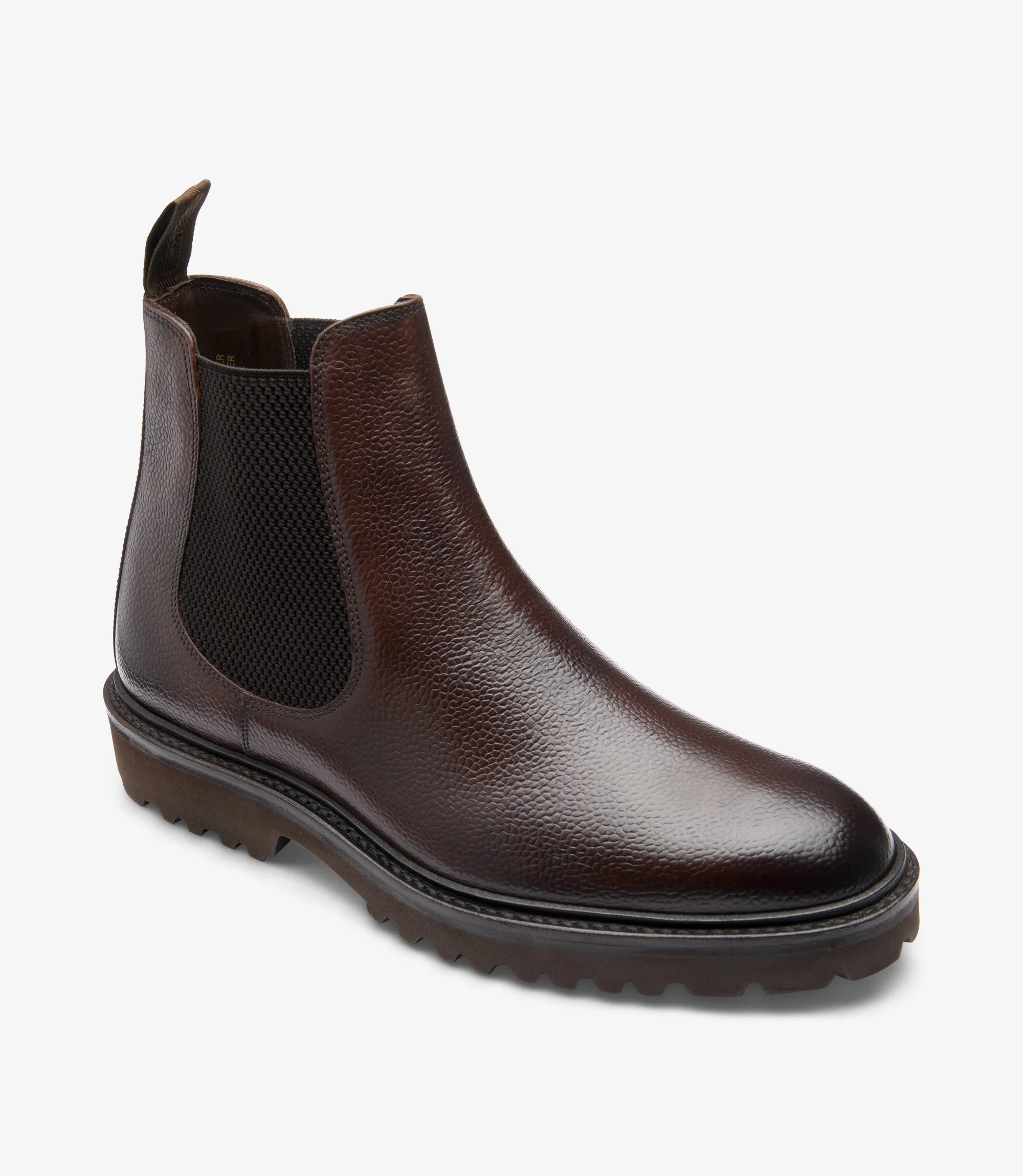 Our Huxley is a premium Chelsea boot in grain leather, combining bold style with dependable practicality. Built on the Artist last, it offers a generous F fitting with a strong, contemporary toe shape that gives the boot a distinctive character. Featuring Goodyear welted lightweight Commando soles, Huxley delivers excellent durability, grip, and the option of resoling, making it a versatile choice for all seasons. These men’s shoes are designed and engineered in Kettering, Northamptonshire, and handmade in our high-grade factory in India, using the same high-quality materials and finishing techniques applied in our renowned Northamptonshire workshop.