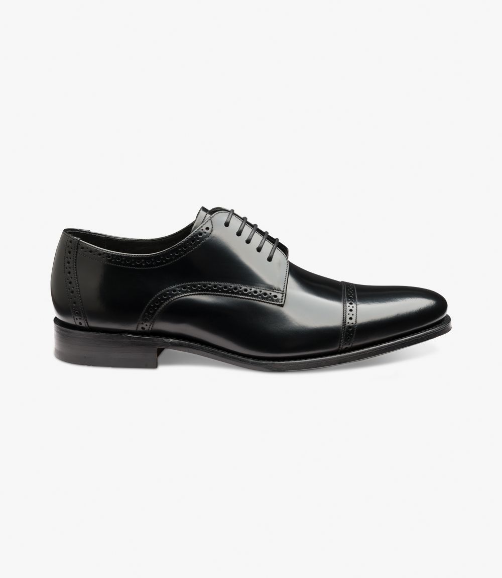 Stylish semi brogue shoe, made with polished leather, made in England.
