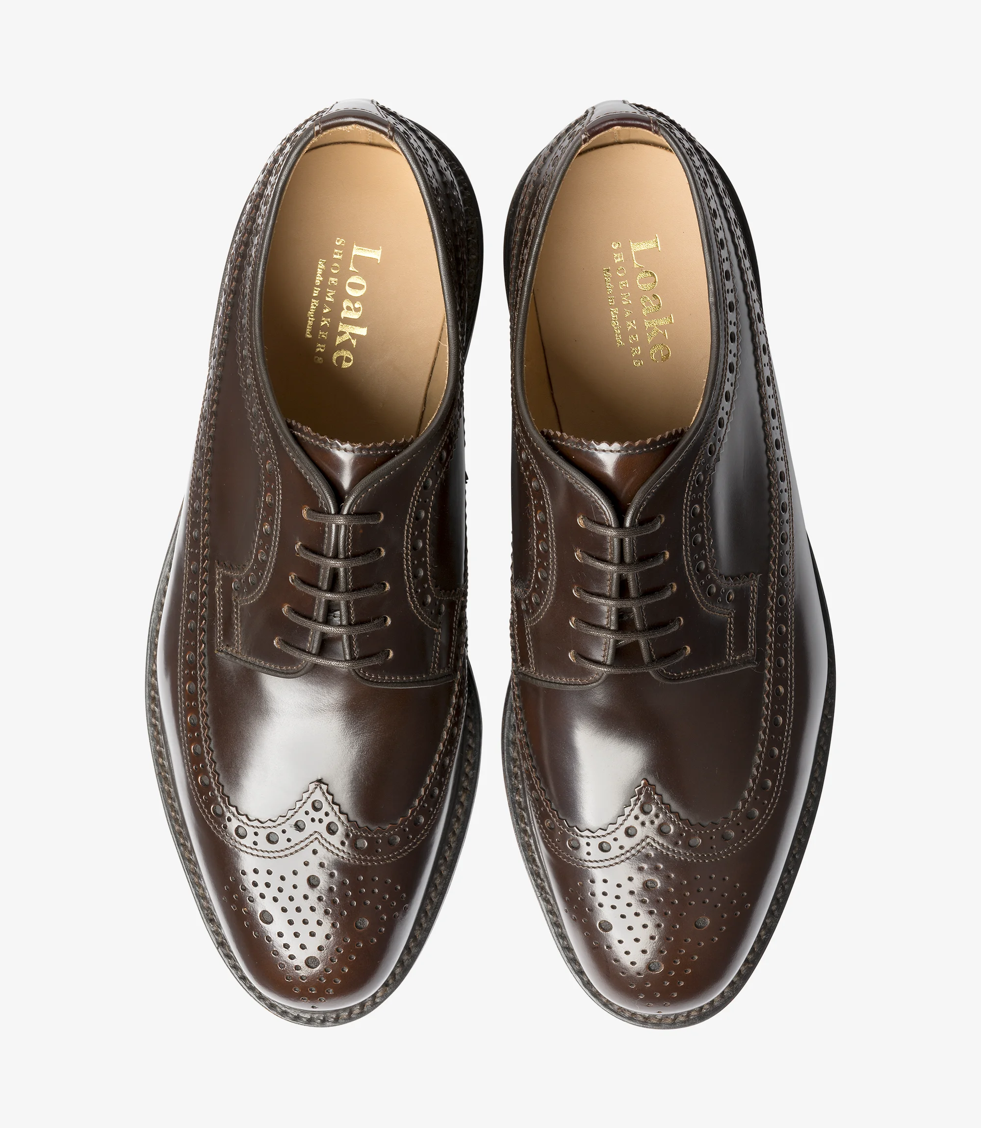 Classic brogue shoe based on our popular Royal longwing brogue, and featuring a rubber stud sole, Sovereign is made in England.