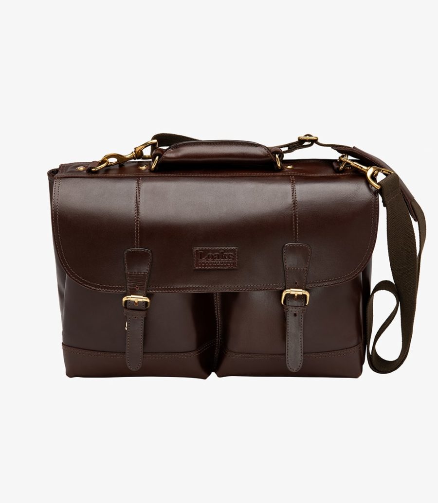 Temple Leather Briefcase made from 100% Buff Dakota leather, fully padded and lined with Loake signature lining. For security, the Briefcase features a fold over flap with a buckle and push fastening. Inside, there’s a zip pocket in the interior of the flap, with two additional pockets and two inner main compartments. On the rear exterior of the Briefcase there’s a slip pocket for easy access essentials. For ease of carrying, Temple has a fully adjustable and detachable strap with an easy carry leather handle. It can accommodate Laptops up to a 15.6” in size.